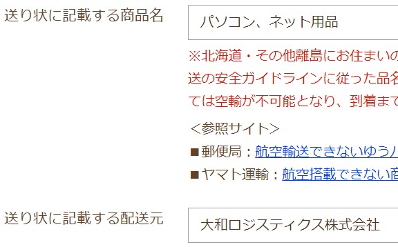 商品名を「パソコン、ネット用品」出品社名を「大和ロジスティクス」にしました。